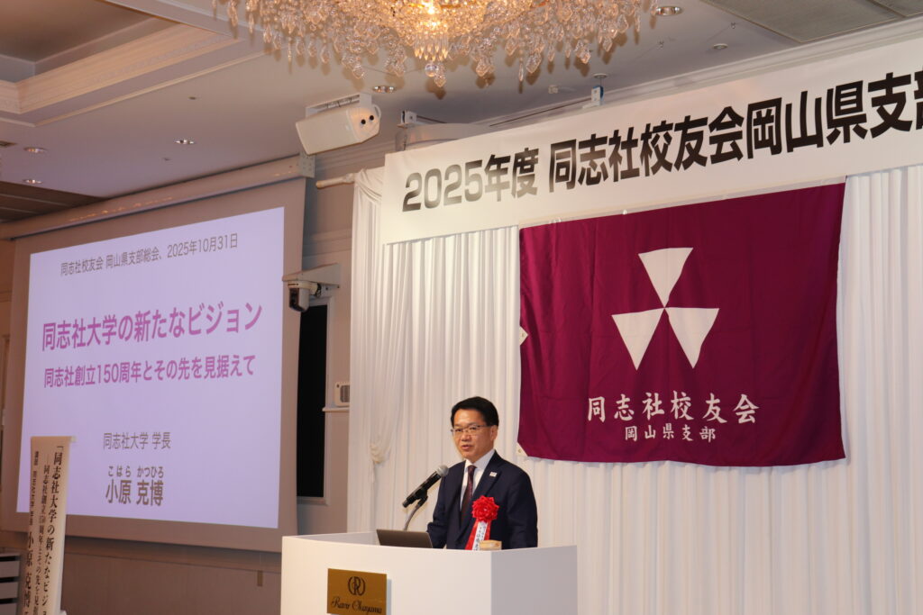 続いて、同志社大学の小原克博学長の「同志社大学の新たなビジョンー同志社創立150周年とその先を見据えて」と題した講演をお聴きし、150年前に同志社英学校を創立した新島襄が遺した数々の言葉、思想を改めて見直し、校友一人ひとりが未来のために同志社リテラシーを学び直し、同志社を語り継いでいく思いを強く持ちました。